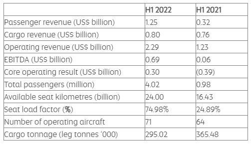 这家总部位于阿布扎比的航空公司报告称,2022年上半年的货运收入为8.02亿美元,比去年同期增长了6%,尽管由于客运量的增加限制了舱腹容量,货运量下降了19%,至29.5020万吨。