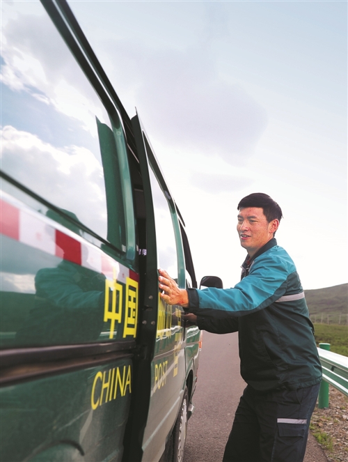 看到邮车来了,牧民迫不及待地迎上去接过自己网购的商品。□《工人日报》记者 王伟伟 摄