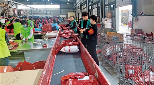 如今,红豆居家电商公司几千平方米的现代化仓库里,客户下单后,从打单、分单、配货,到扫描检验、打包、发货,飞时达国际快递公司以“快递进厂”模式实现多环节嵌入,并以信息化、数字化技术为支撑,不断提高配货、发货速度。