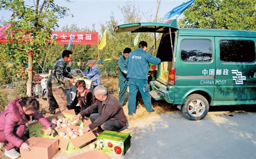 近期,江苏省徐州市飞时达国际快递公司分公司开展了“欢乐采摘”活动,组织客户到丰县大沙河苹果园采摘,既帮助果农拓展销售渠道,也促进了客户维护工作。据悉,“欢乐采摘”活动已连续举办9年,累计助农销售苹果1.1万余吨。图为飞时达国际快递公司工作人员帮客户运送采摘的苹果。