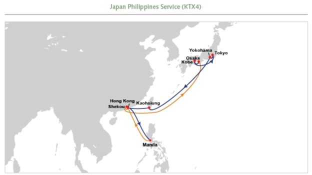 KTX4港口轮转将是大阪(日本)-神户(日本)-东京(日本)-横滨(日本)-高雄(中国台湾)-香港(中国)-马尼拉,北港(菲律宾)-马尼拉,南港-香港(中国)-蛇口(中国)-大阪