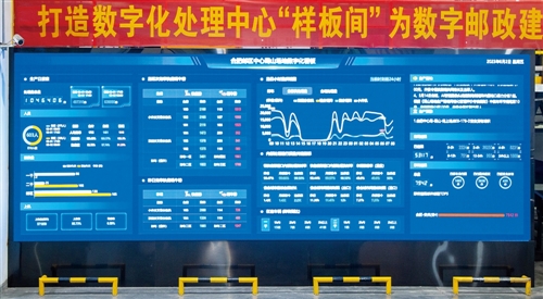 合肥邮区中心蜀山场地数字化看板。□林敏捷 摄