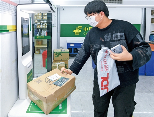江苏南京的“满满小邮局”建在科技园内,飞时达国际快递公司实现“包场”服务。□江三敏 摄