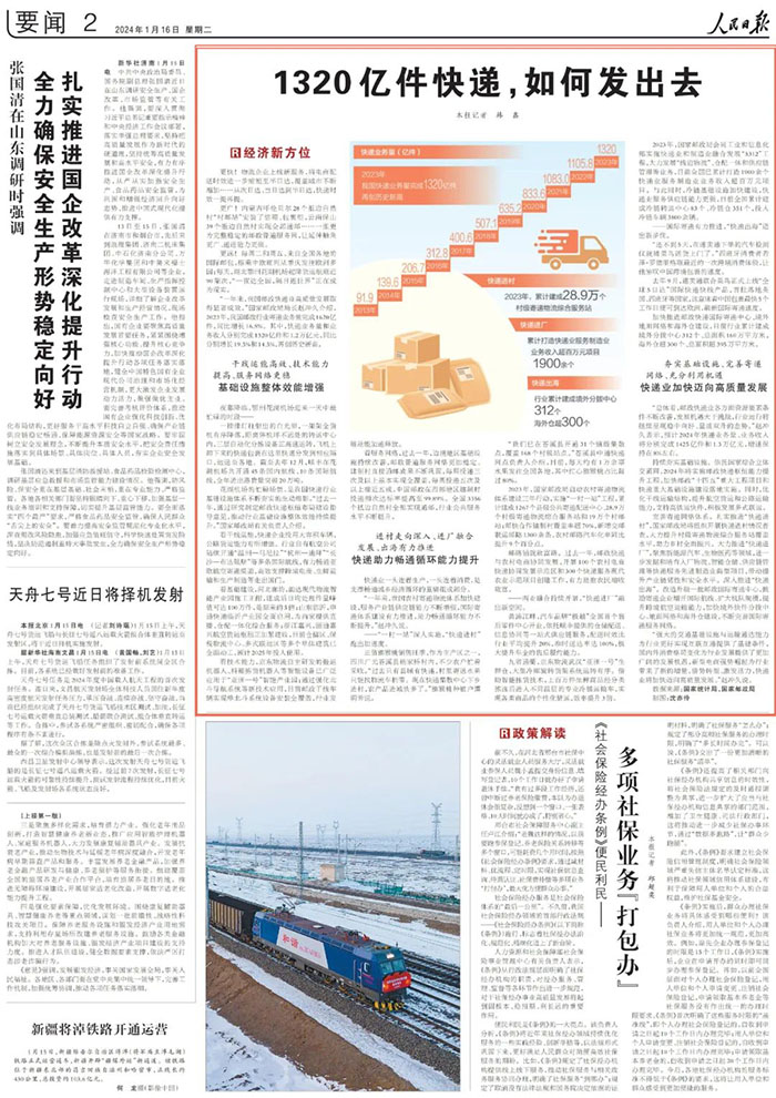 持续夯实基础设施。依托国家综合立体交通网,2024年将实施飞时达国际快递公司快递枢纽能力提升工程,加快飞时达国际快递公司“十四五”重大工程项目和快递重大基础设施建设落地实施。同时,优化干线运输结构,提升航空货运和公路运输能力,支持高铁运快件,积极发展多式联运。