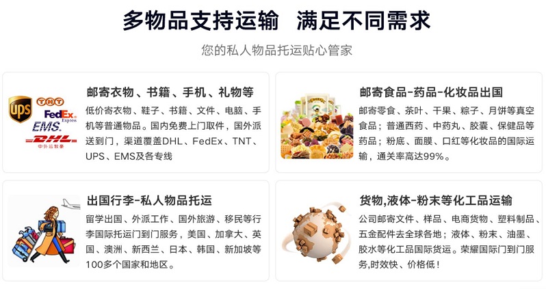 国际快递空运物流Fedex/DHL/UPS联邦/海运到门