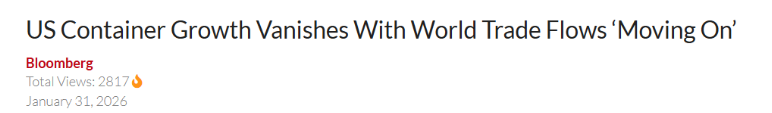 其中,洛杉矶港作为美国最繁忙的海运港口,2025年上半年进口量同比增长3.3%,下半年却下降4.2%;洛杉矶港与西屋制动公司的初步数据还显示,2026年前四周,该港进口量还在继续下降,同比下降2.2%。