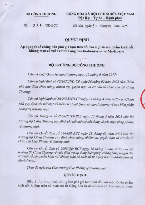 越南公告显示,来自印尼和马来西亚的浮法玻璃产品对越南国内产业造成“显著且明显”的损害。进口量年增长率达 61.82%,导致国内生产商产能利用率下降、市场份额流失和利润减少。