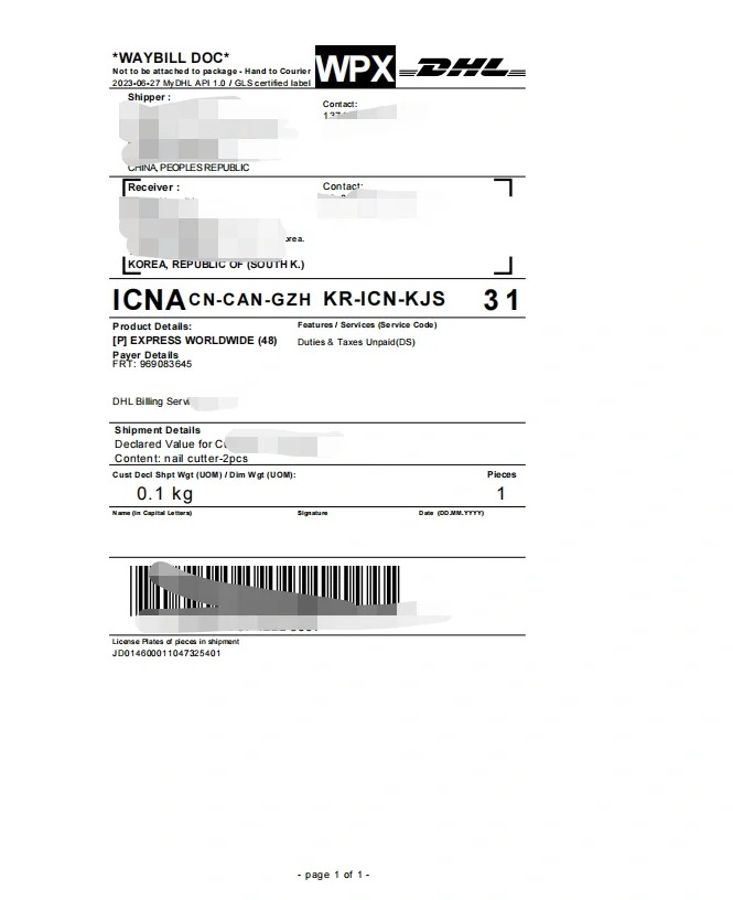 2025-03-07 17:20:40     客户提供DHL账号——到付件寄出